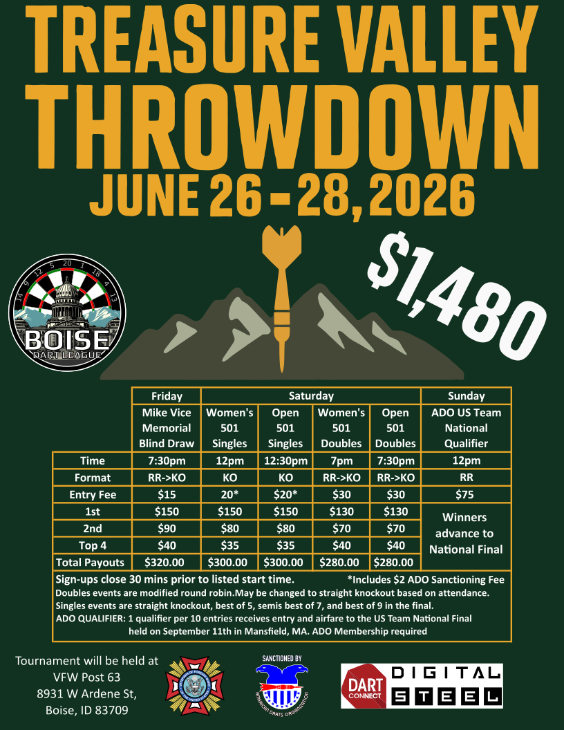 ADO darts coming to Boise! Play the national qualifier and win a spot in the US Team Finals including airfare!